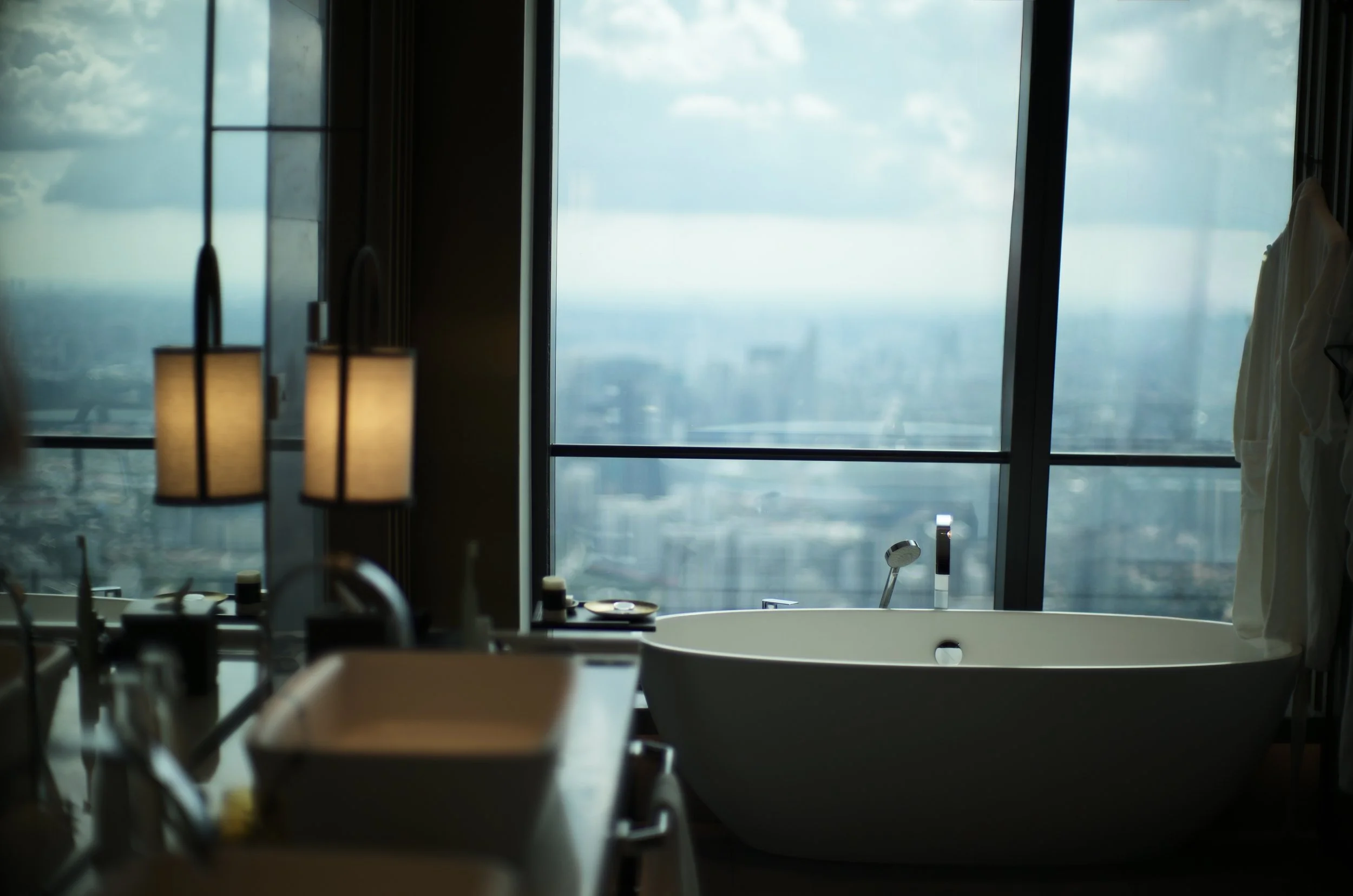 Every room and suite boasts floor-to-ceiling windows, allowing the city skyline to dominate your view. But it’s in the geometry of the rooms -particularly the corner rooms and suites - where the design truly shines. Alcoves create shifting perspectives: a cozy window lounger for reading, a bathtub positioned for skyline soaking. A daybed echoes the feel of a traditional veranda, allowing panoramic city views without stepping outside.